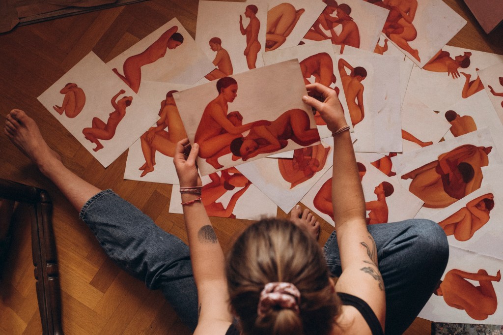 Definicje tworzą pewną historię; występują po parę w ciągu, który następnie komentuję serią ilustracji. Nie są one jednak dosłownym odzwierciedleniem treści, a równoległą opowieścią o człowieku, jego potrzebach, pragnieniach i uczuciach oraz o ciągłym przenikaniu się ich. O relacjach z innymi i samym sobą. Są moimi przemyśleniami o zaspokajaniu naturalnych potrzeb emocjonalnych każdego z nas, o potrzebie odczuwania poczucia bezpieczeństwa i efektach jego braku. O odrzuceniu, o stracie, o byciu wykluczonym, przezroczystym, o walce, o próbach mierzenia się z otaczającą rzeczywistością, ale także ze sobą samym, o akceptacji, o pragnieniu spokoju i potrzebie opieki, o zawieszeniu w przestrzeni i pragnieniu zejścia na stały grunt, o potrzebie odczuwania stałego gruntu, bycia zaopiekowanym i o walce z rodzącą się w nas pustką.